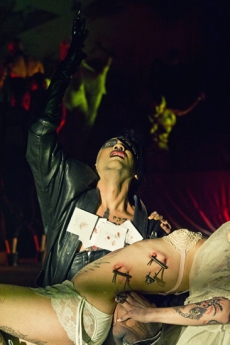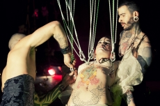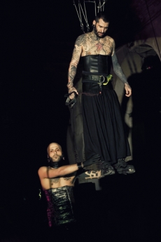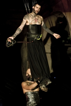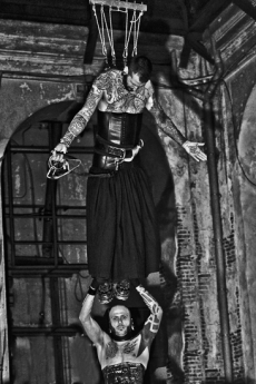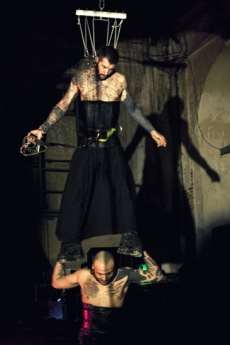 A Sangre Fria is a performance group who practice sessions in their shows called Body Suspension, with fakir influence, which in view of the audience face the pain threshold (the word "fakir" is of Arabic origin to refer to the beggars who practiced mystical acts of austerity and public mortification, which also refers to the Indian ascetics who practice public mortification exercises). //////////////////////////////////////////////////////////////////////////////////////////////////////////
