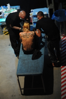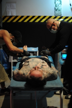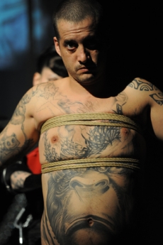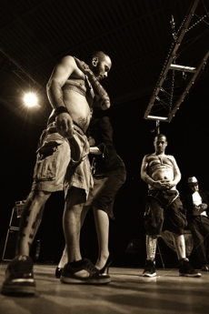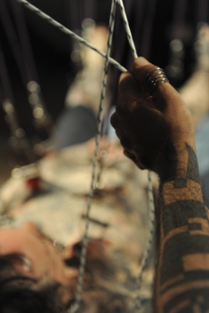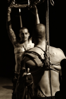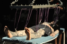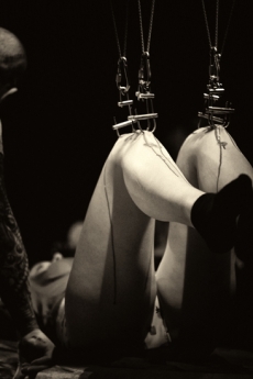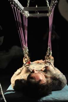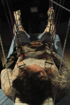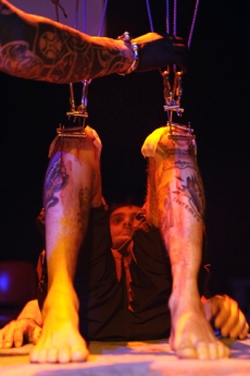A Sangre Fria is a performance group who practice sessions in their shows called Body Suspension, with fakir influence, which in view of the audience face the pain threshold (the word "fakir" is of Arabic origin to refer to the beggars who practiced mystical acts of austerity and public mortification, which also refers to the Indian ascetics who practice public mortification exercises). //////////////////////////////////////////////////////////////////////////////////////////////////////////