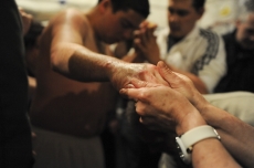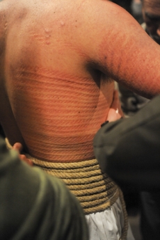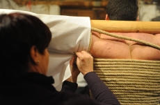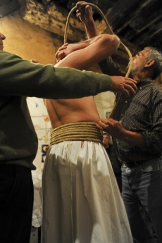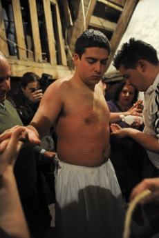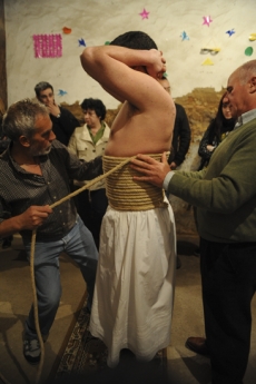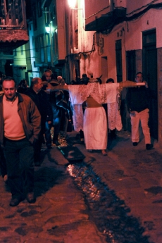 ENG: The Rite of Empalao has been celebrated since immemorial time on the Holy Thursday night. It is the flagship festival of Valverde de la Vera and perhaps in the whole region, declared of National Tourist Interest on January 18, 1980. The Empalao is prepared in the family home. It is a ritual that invites to the silence moment, given the sacrifice and devotion that put the valverdanos in this tradition. The procession of each Empalao walk in silence. Behind him, the household covered with dark blankets, one of them carrying a lighted lantern, the Cirineo. At each Station of the Via Crucis, the Empalao and his companions kneel and pray in silence. When the Empalao crossed with other Empalao or a Nazarene them both kneel After the Via Crucis of the 14 stations, the Empalao and his family back home. There, the Empalao undresses and released from the bonds and finally he rubbed the body to restore good blood circulation. ////////////////////////////////////////////////////////////////////////////////////////////////////////// SP: El Rito del Empalao se viene celebrando desde tiempo inmemorial en la noche del Jueves Santo. Es la Fiesta más emblemática de Valverde de la Vera y quizás de toda la comarca, declarada de Interés Turístico Nacional el 18 de Enero de 1980. El Empalao se prepara en la casa familiar. Es un ritual que invita al silencio, dado el sacrificio y la devoción que ponen los valverdanos en esta tradición. La procesión de cada Empalao camina en silencio. Tras él, el grupo familiar cubiertos con mantas oscuras, uno de ellos porta un farol encendido, el Cirineo. En cada estación del Vía Crucis, el Empalao y sus acompañantes se arrodillan y oran en silencio. Cuando se cruza con otro Empalao o con un Nazareno se arrodillan ambos. Terminado el Vía Crucis de las 14 estaciones, el séquito regresa a casa. Allí, el Empalao se desviste y se desoga, finalmente se le fricciona el cuerpo para recuperar la buena circulación de la sangre. //////////////////////////////////////////////////////////////////////////////////////////////////////////