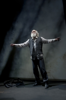 La noche de Max Estrella nace a partir de Luces de Bohemia. La dramaturgia transita por aquellas escenas de la obra de Valle-Inclán en las que aparece el protagonista. Max Estrella, hiperbólico andaluz, poeta ciego, “conmuere” en un Madrid absurdo, brillante y hambriento de principios de mil novecientos. Su mala estrella deambula errante en su última deriva nocturna. La percepción poética de Max es el impulso estético de esta propuesta teatral. Max vive apresado en su ceguera, en sus alucinaciones sonoras y sus iluminaciones en la sombra. Un mundo escénico, de piel adentro, espejo del quejío vital de Max. Con este proyecto escénico, compartido por Andalucía y Galicia, en el 75 aniversario de la muerte de Valle-Inclán, se desea que la noche de Max Estrella no sea más que un viento último volandera ceniza, pero esperanza, si, esperanza en un mundo más cordial y desprendido, donde haya siempre tendida una mano al infortunio, que diría Alonso Zamora Vicente de Luces de Bohemia. ////////////////////////////////////////////////////////////////////////////////////////////////////////// Fco. Ortuño Millán (Dramaturgia y Dirección) Pilar Millán (Imágenes – Pintura, fotografía digital y video) Carlos Álvarez Novoa – MAX ESTRELLA (Interprete) Rafael Abolafia (Dramaturgia visual / sonora y video)